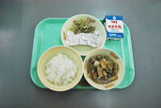 今日のメニューは、ご飯・牛乳・鶏肉と野菜の旨煮・鯖の銀紙焼き・キャベツのゆかり和えです。